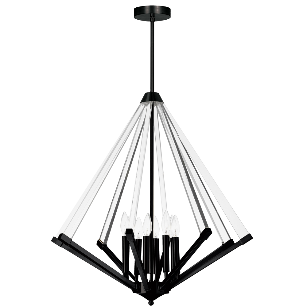 This 8-light LED compatible is perfect for the ceiling in a dining room. It requires 8 incandescent B10 bulbs and it is suitable for either a residential or commercial space. It is covered by a 1-year warranty.