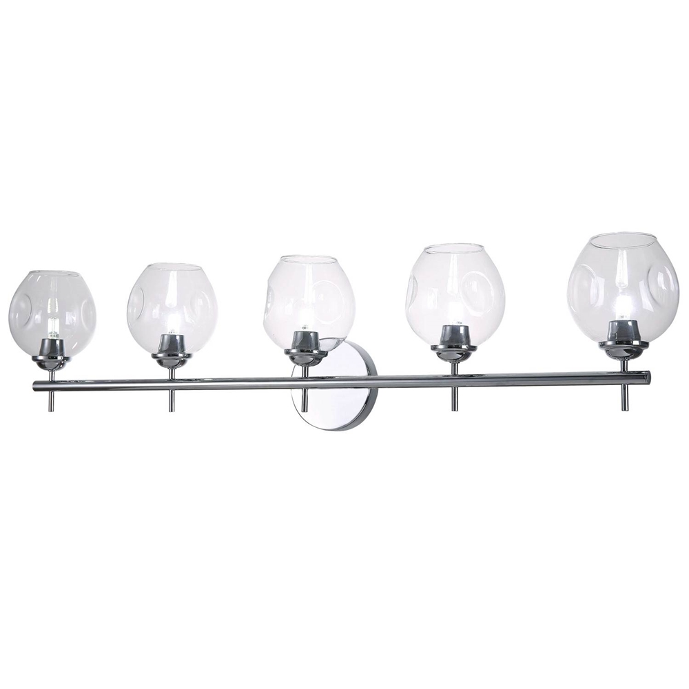 Whether commercial or residential, Dainolite will add a unique touch to your bathroom with this vanity light from the Abii collection. This 5-light model features a beautiful polished chrome finish with a perfect clear glass shade. It measures : 34.1-in (L) x 4.5-in (D) x 9-in (H).