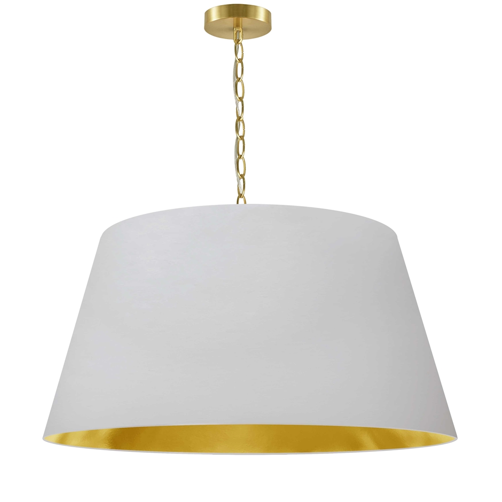 Whether commercial or residential, Dainolite will add a unique touch to any space with this Brynn 1-light pendant light and its beautiful aged brass finish. This model features a white and gold shade and measures 26-in (W) x 13-in (H).