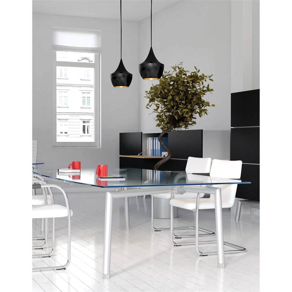 This 1-Light Helsinki pendant light from Dainolite features a matt black finish with gold interior. It will bring a touch of class to any home decor.
