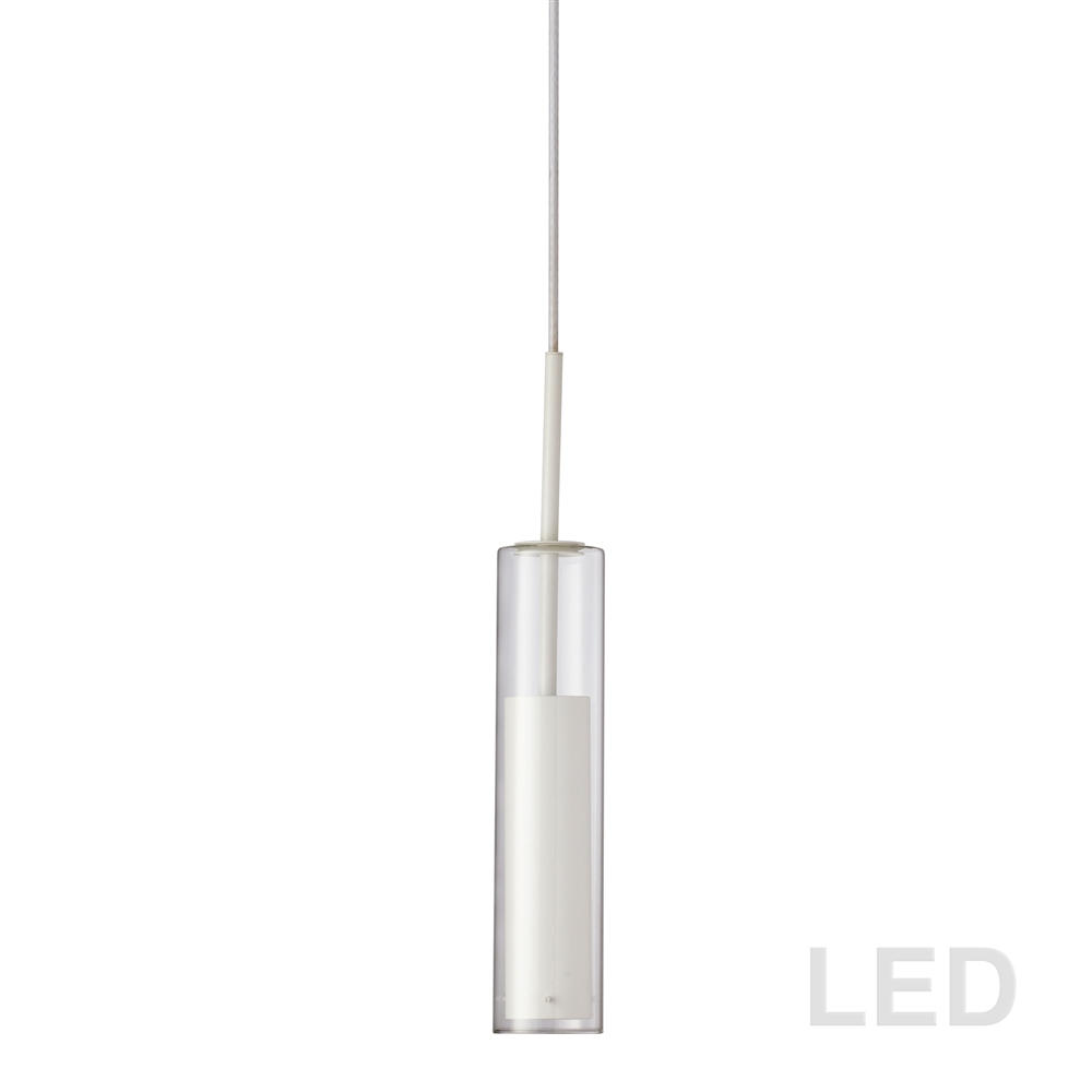 This 5 W Luna pendant light from Dainolite features a white finish with clear glass. It will bring a touch of class to any home decor.