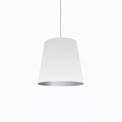 Whether commercial or residential, Dainolite will add a unique touch to any space with this 1-light medium polished chrome pendant with oversized white exterior and silver interior tapered drum shade.