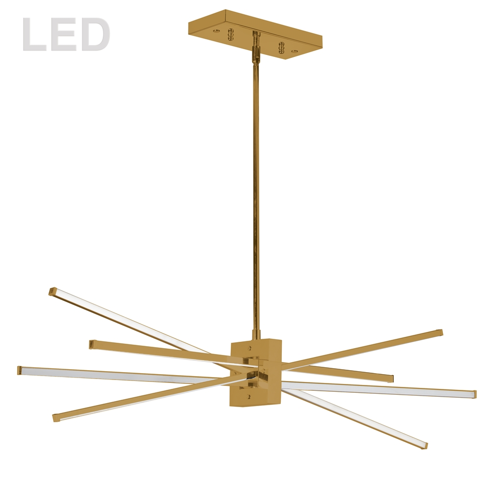 46 W horizontal pendant with aged brass finish and a white diffuser. Add sophistication to a dining or cooking area with this beautiful and efficient Dainolite chandelier.